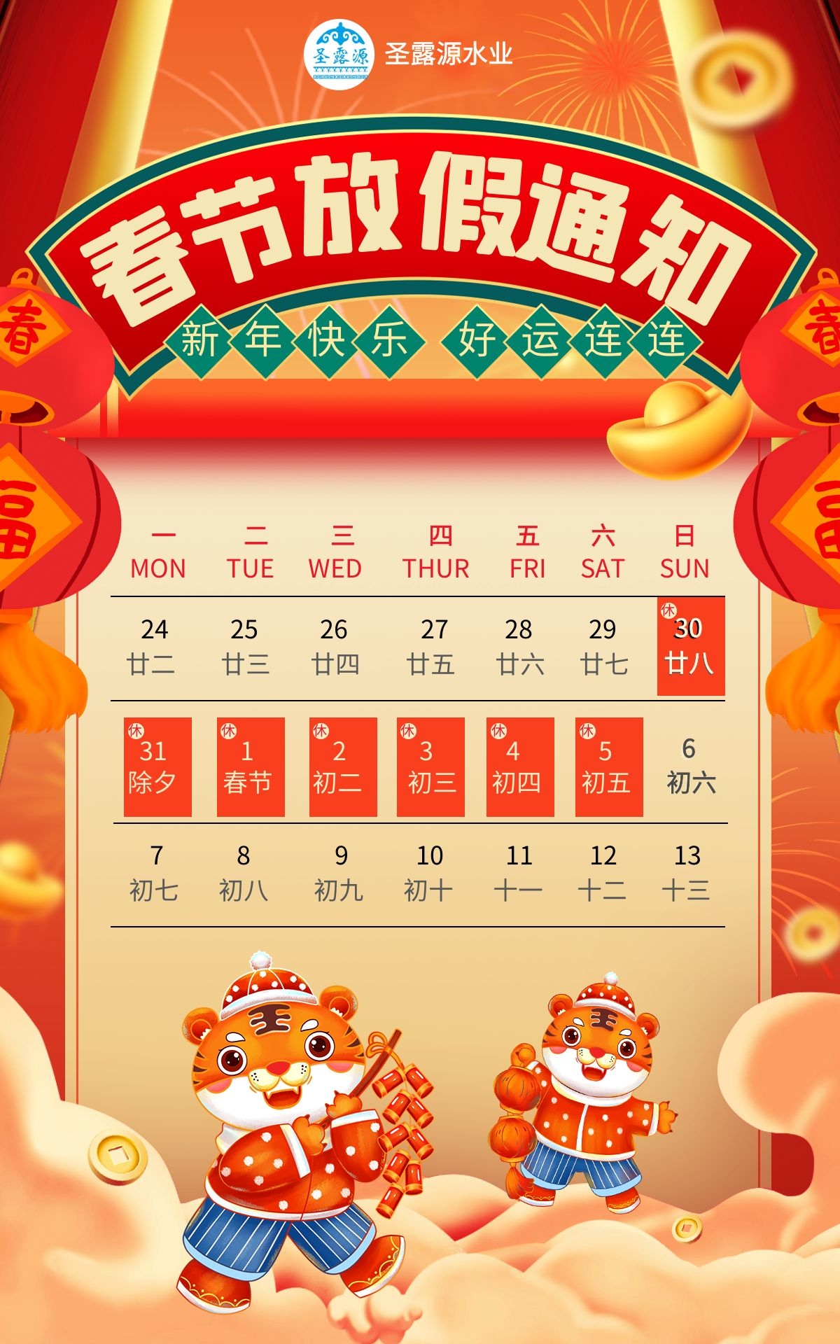 呼和浩特大桶水--圣露源桶装水春节放假通知