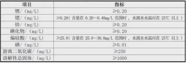 天然矿泉水界限指标,是判定的重要参数,表中8项指标中必须有1项(或1项以上)符合规定。