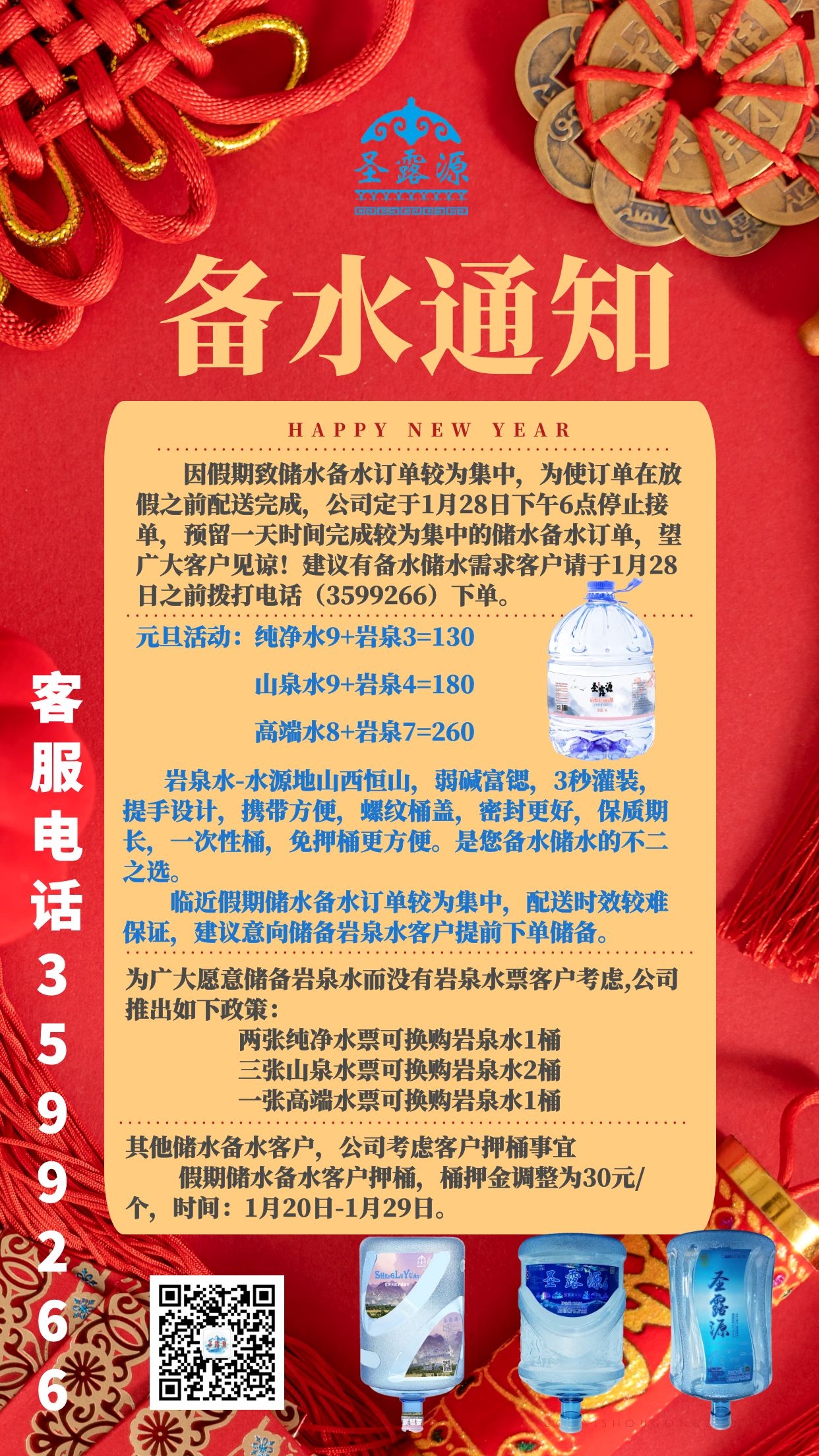 呼市桶装水---圣露源桶装水元旦活动/备水通知/放假通知